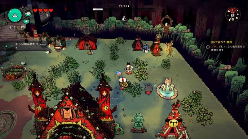 一方、拠点づくりでは、施設の建設から信者のお世話までやることが盛りだくさん。さらに、サブクエストやミニゲームなどの、やり込み要素も充実しており、インディーゲームとは思えないほどのボリュームに驚かされました。