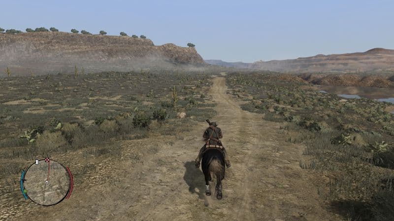 本作は、アメリカ南西部からメキシコ北部を横断できるオープンワールドゲームです。2010年の作品なのでRDR2と比べたら小規模ですが、それでも十分な広さがあり、狭さは全く感じませんでした。