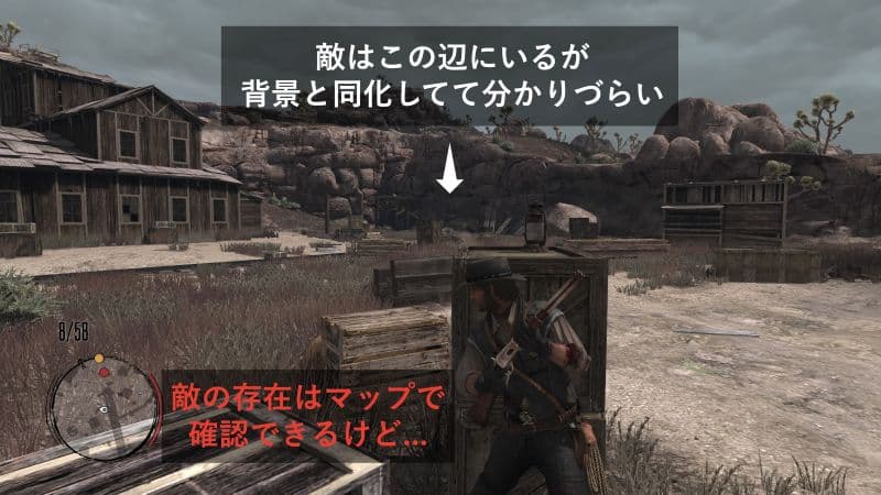 銃以外にも投げナイフを使ったステルスキル、火炎瓶や投げ縄などの多彩な手段も用意されているからプレイヤーの自由に戦闘を楽しめるゲームです。